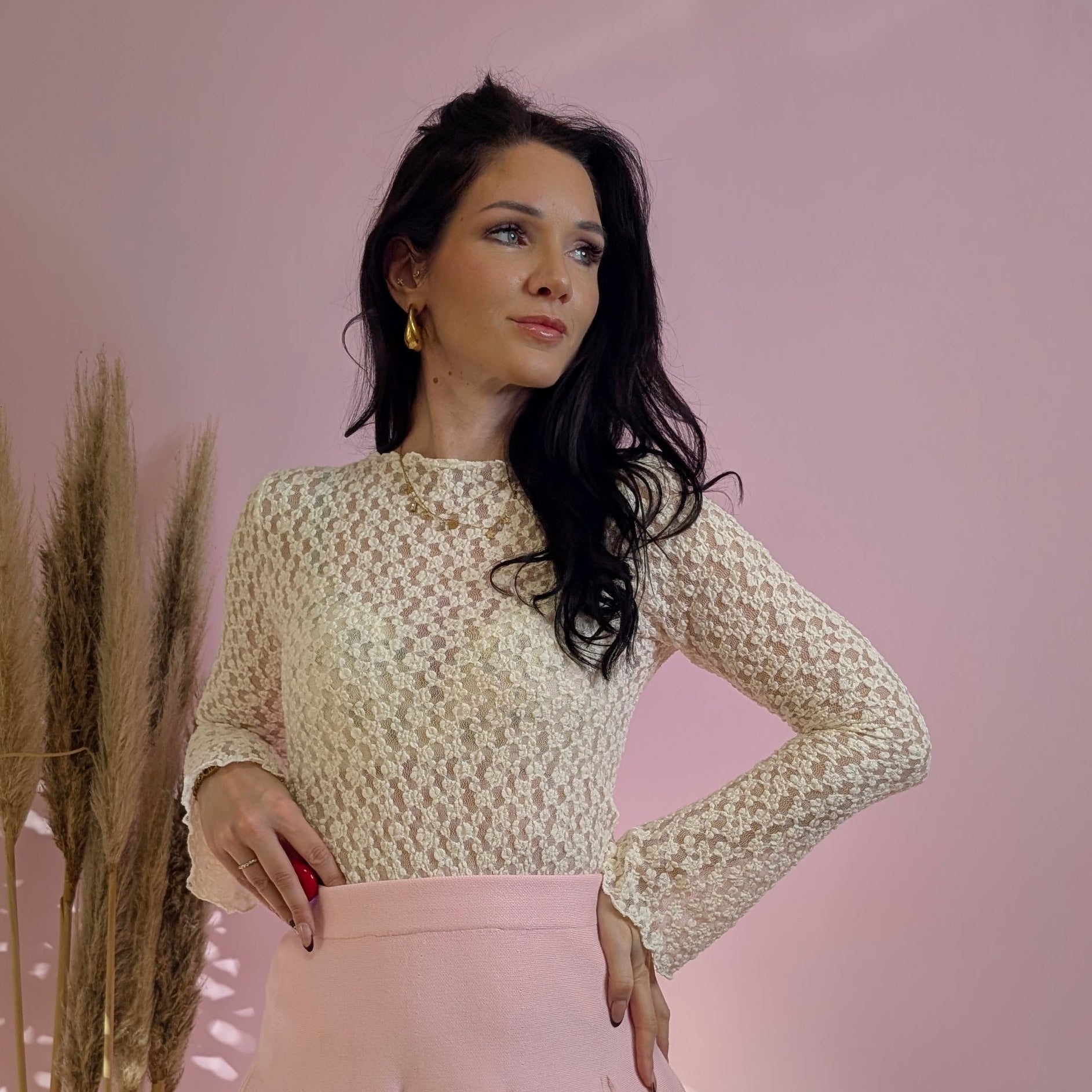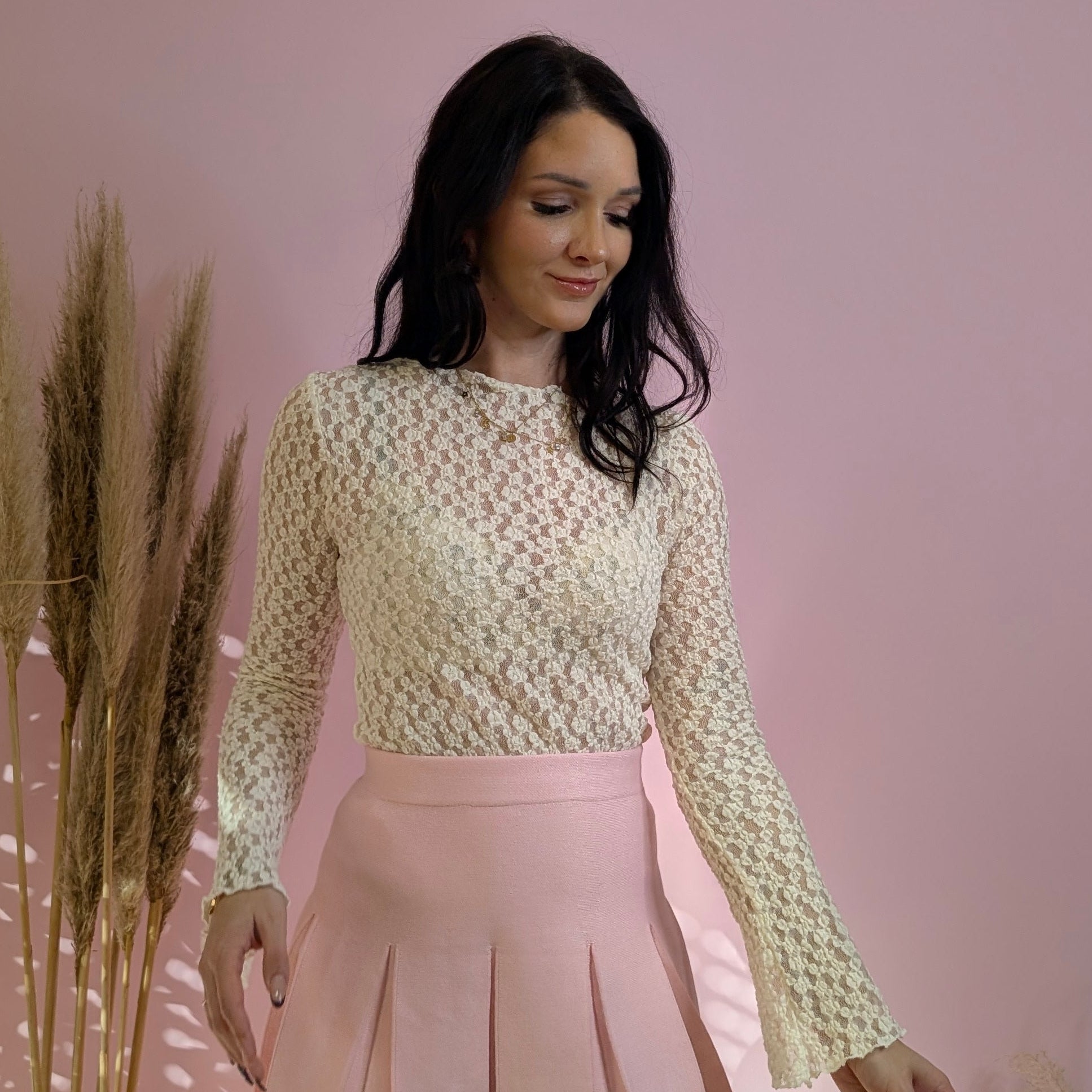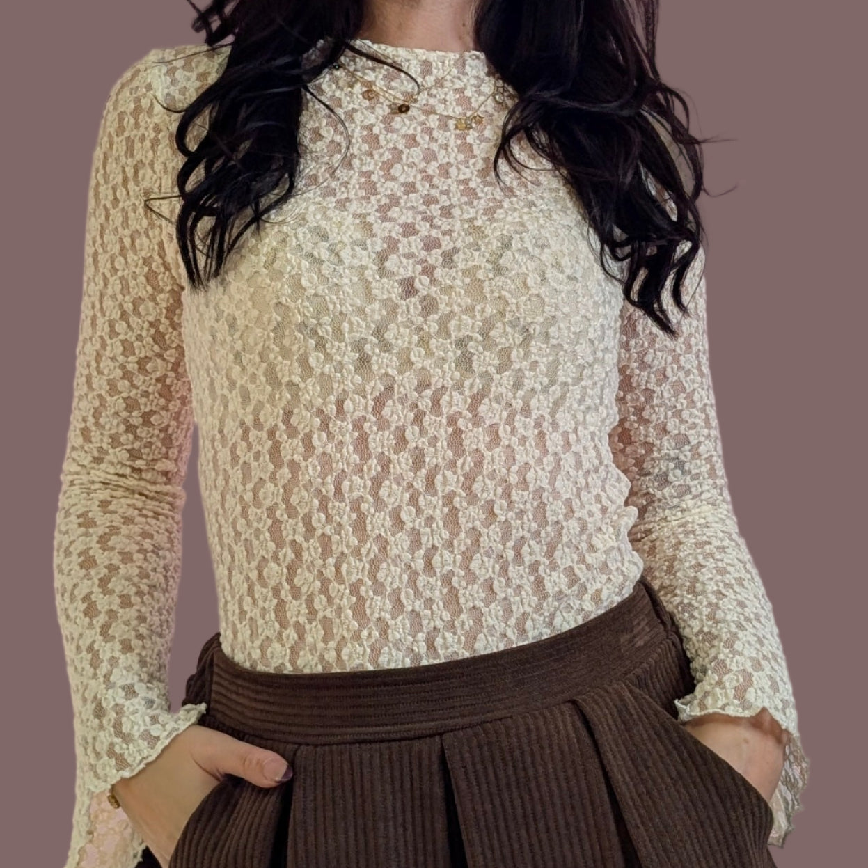 Es kombiniert den angesagten Sheer-Look mit einer wunderschönen, floralen Spitzen und fängt damit perfekt den lässigen Boho-Trend ein. Das transparente Material macht es zum perfekten Layering-Piece. Die eleganten, langen Ärmel laufen leicht aus und verleihen deinem Look eine romantische Note.