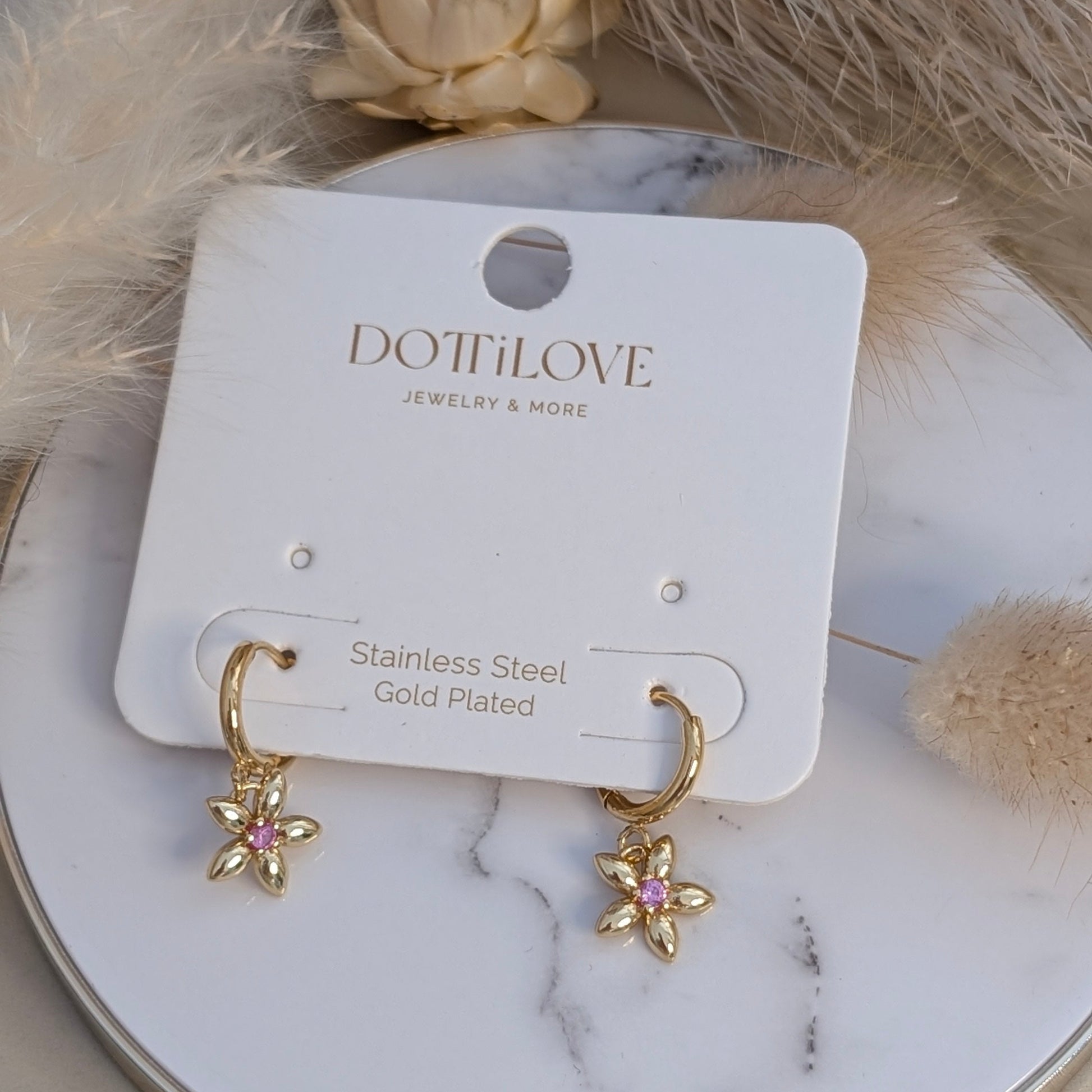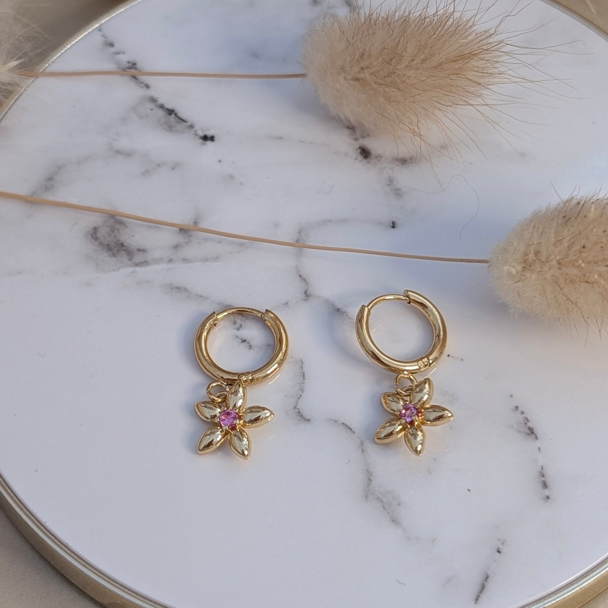 Design: Kleine Creolen mit beweglichem Blumen-Charm