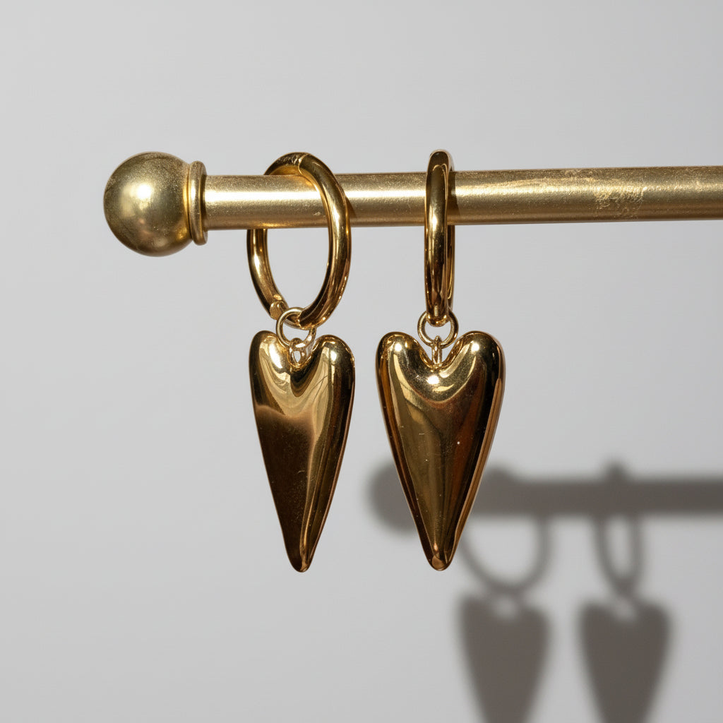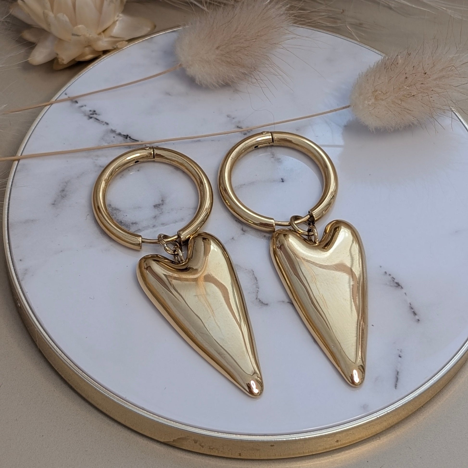 Bist du bereit für ein echtes Style-Upgrade? Diese Creolen sind der perfekte Mix aus klassisch und absolut im Trend. An der robusten, goldplattierten Creole hängt ein mega angesagter Herz-Anhänger, der alle Blicke auf sich zieht.