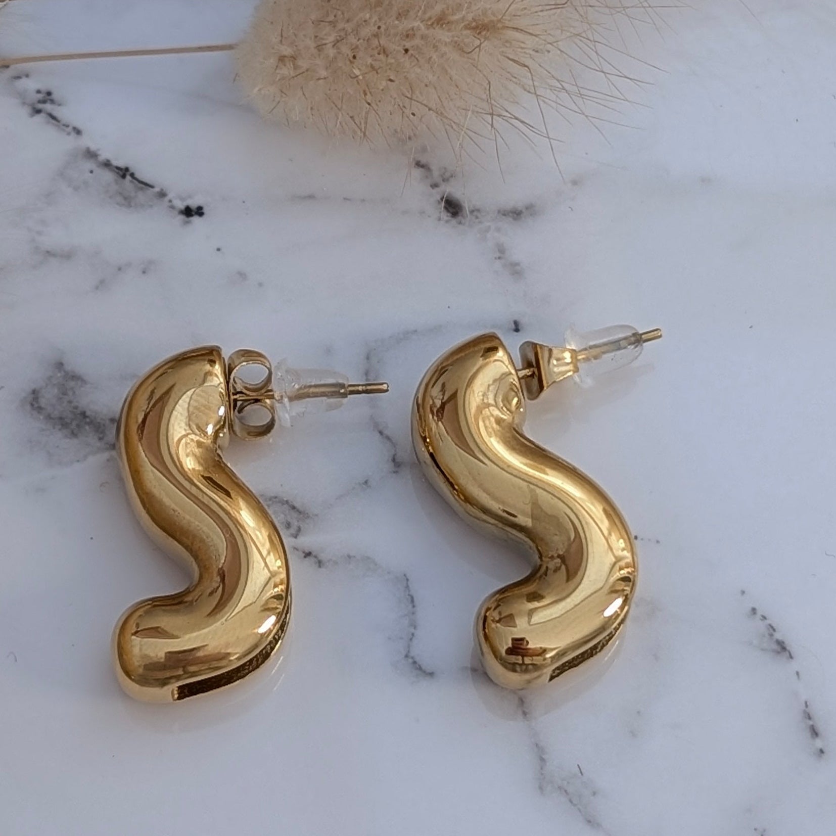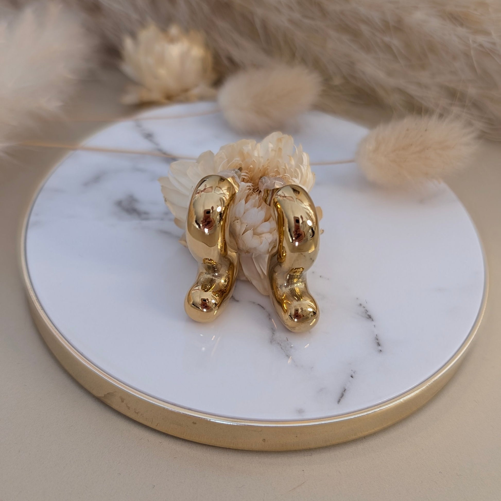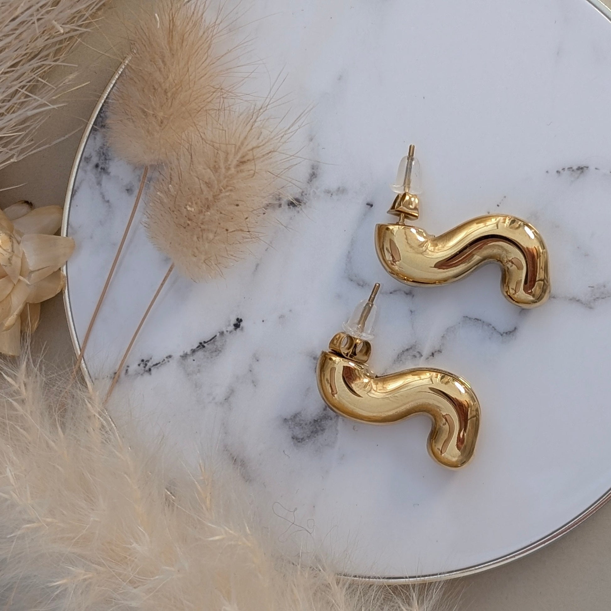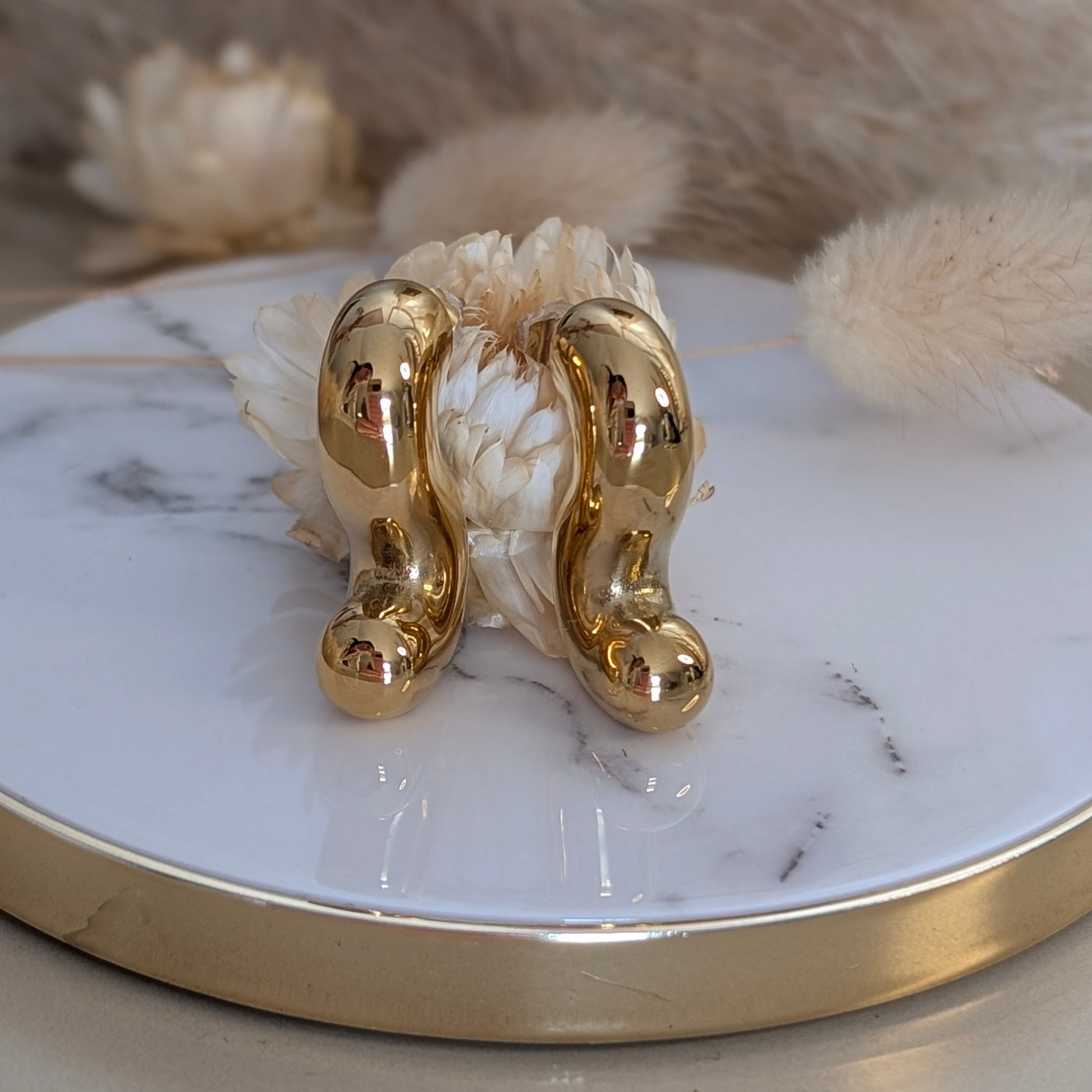 Die organische, unregelmäßige und fließende Form ist absolut im Trend und macht jeden Ohrring zu einem Unikat. Das hochglänzende Finish fängt das Licht bei jeder Bewegung ein und sorgt für einen mega luxuriösen "Molten Gold"-Effekt.