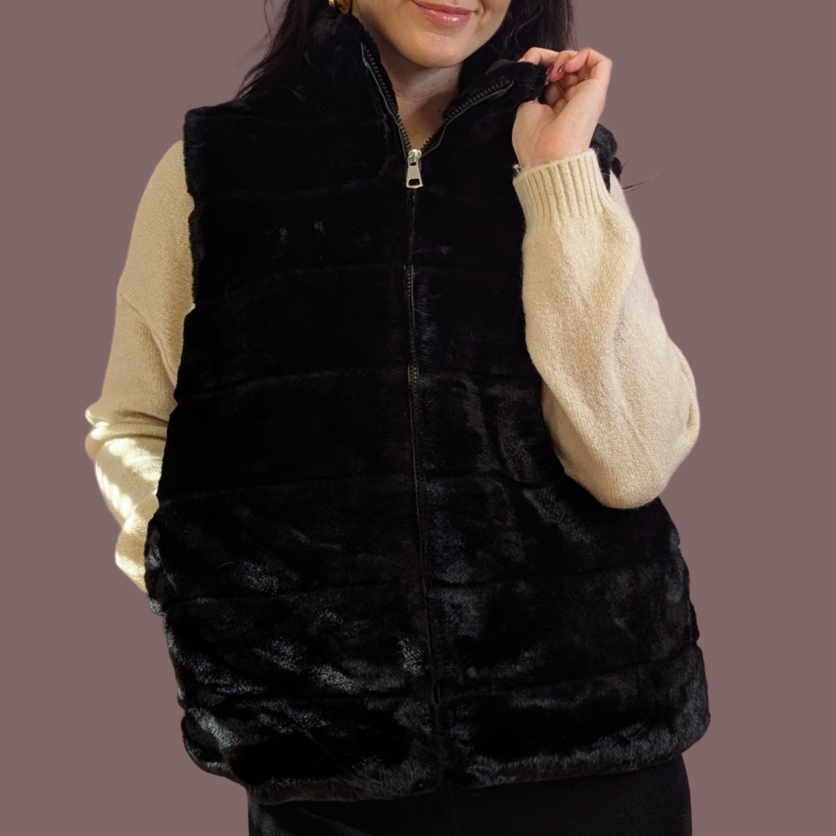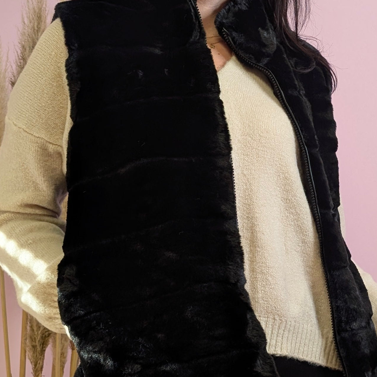 Unsere Plüschweste ist das It-Piece, das deinem Outfit sofort ein stylisches und superkuscheliges Finish verleiht. Der moderne Stehkragen hält dich an kühlen Tagen warm, während der durchgehende Reißverschluss das cleane Design abrundet.