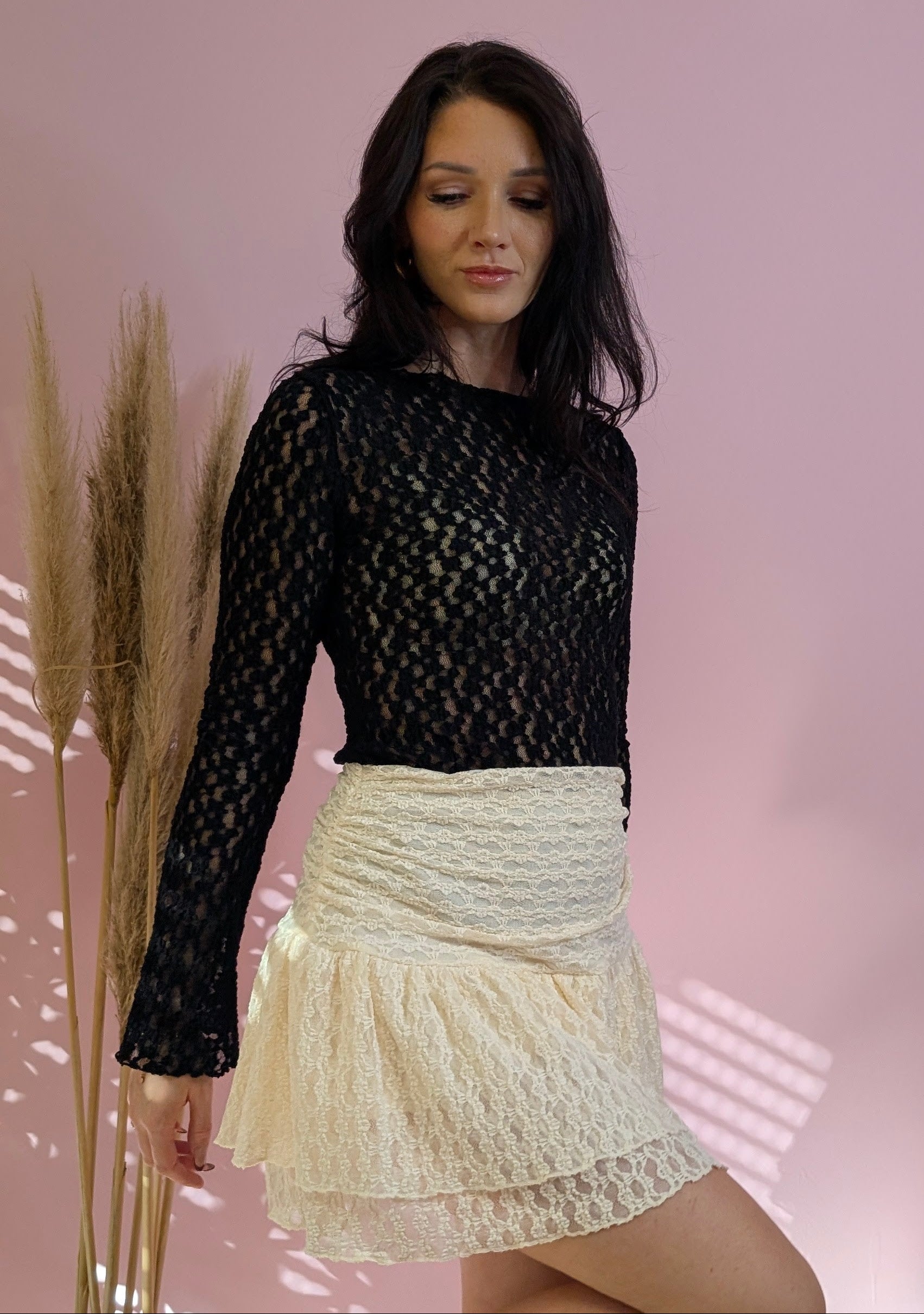 Verliebe dich in unseren Spitzen-Skort in Creme! 🤍 Der perfekte Mix aus Rock & Shorts im Boho-Stil. Mit hohem, gesmoktem Bund. Ideal für Festivals & Sommer.
