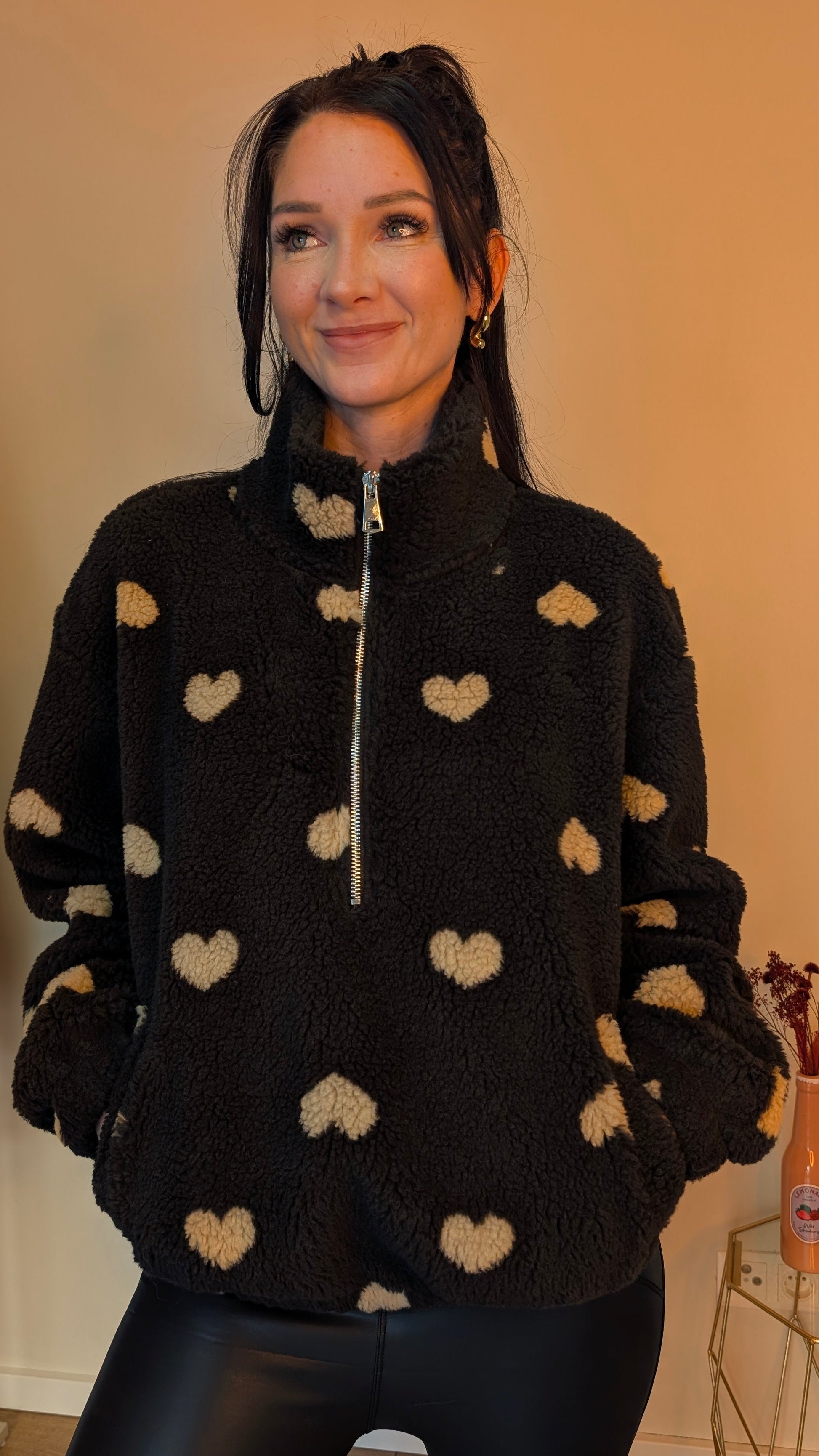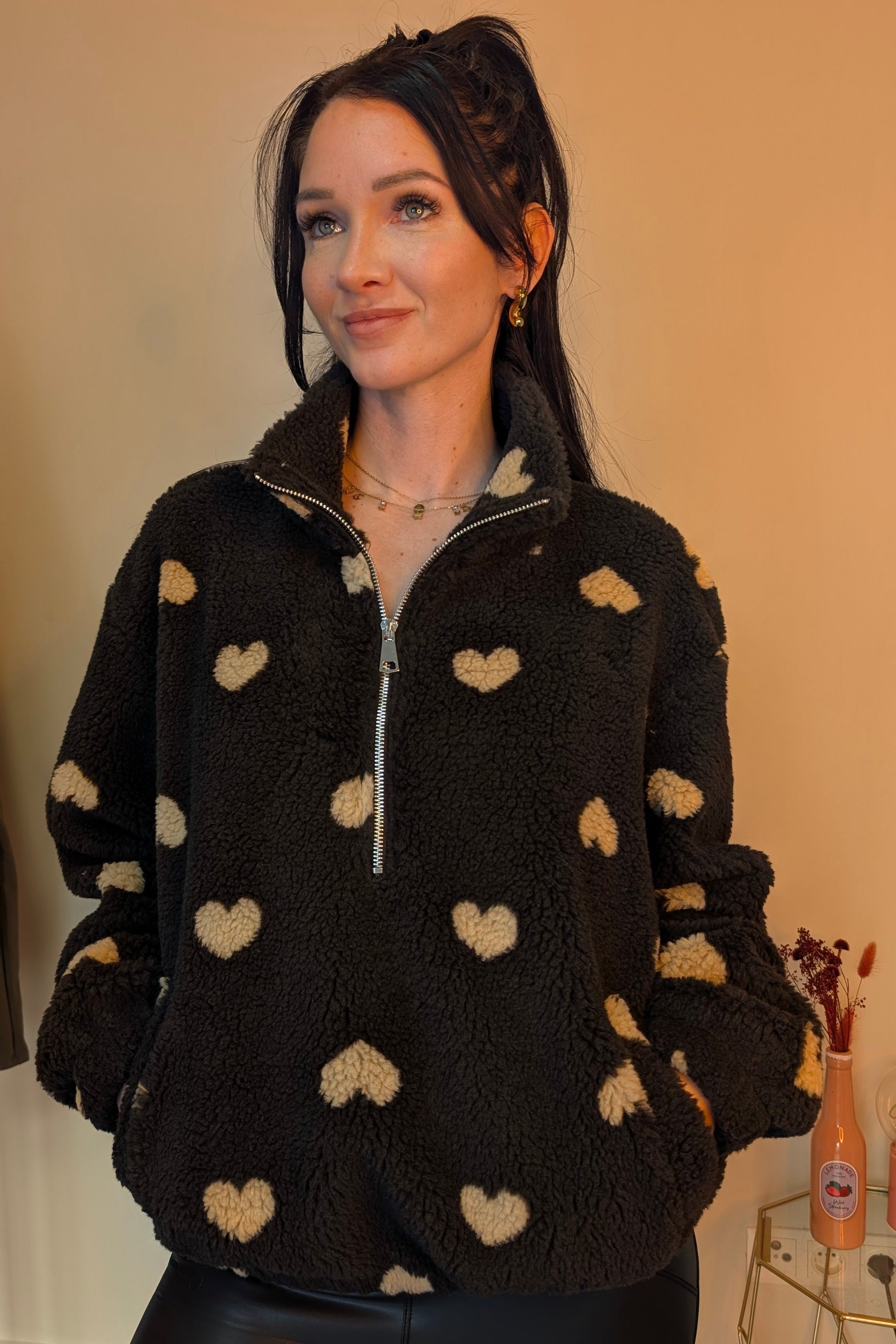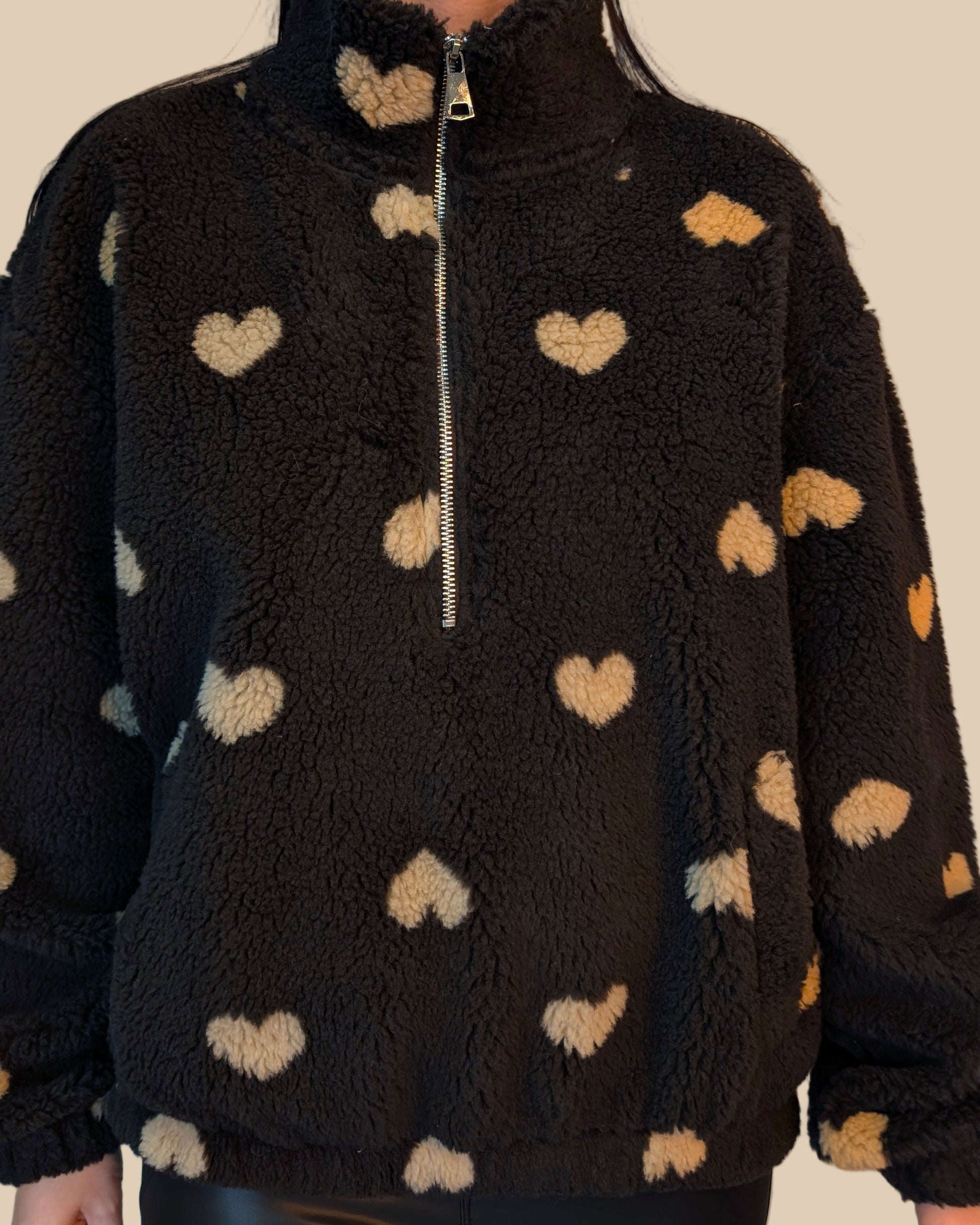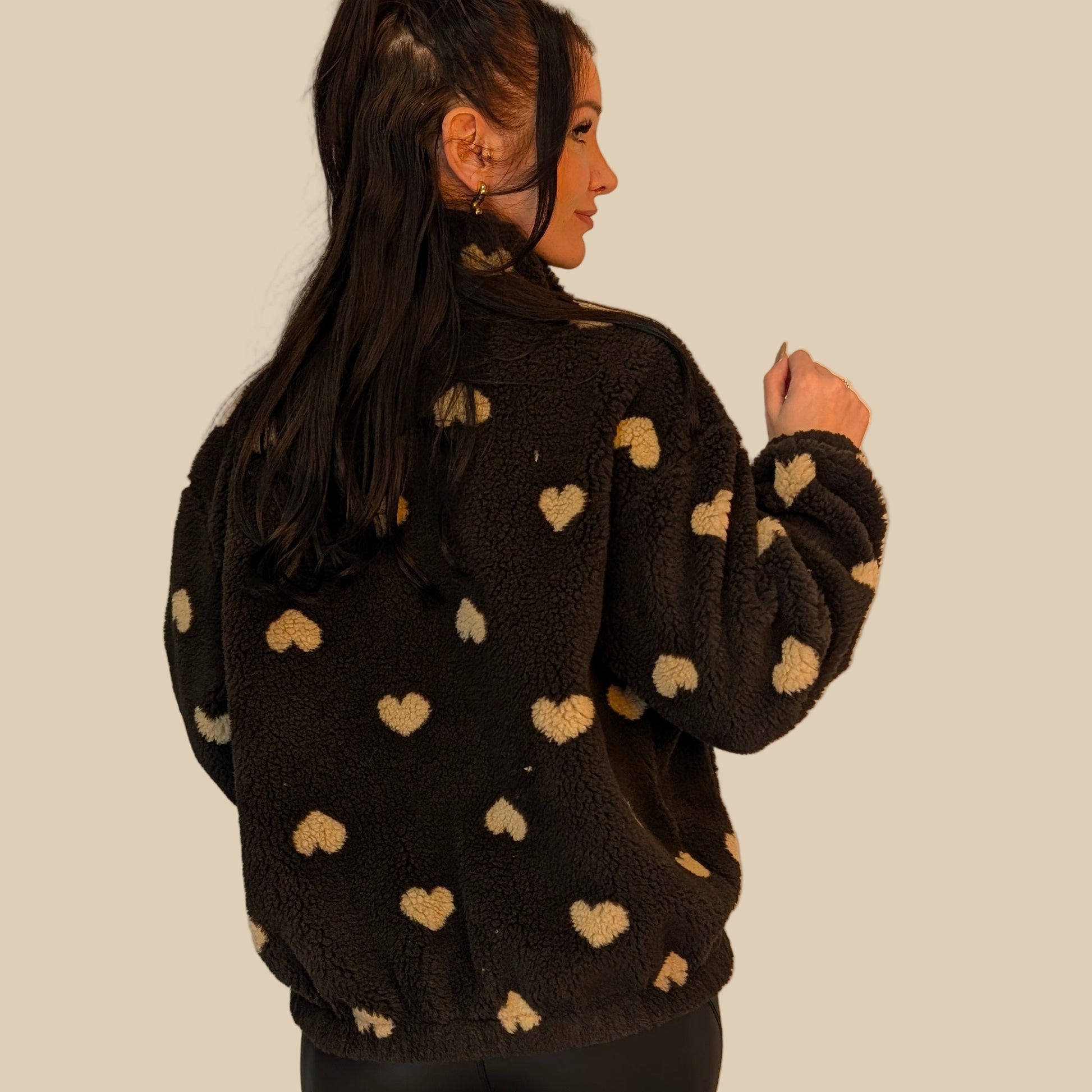 Verliebe dich neu in den Winter! Dieser superweiche Fleece-Pullover in Schokobraun hält dich nicht nur wunderbar warm, sondern ist mit seinem süßen Herzchen-Muster auch ein echtes Fashion-Statement. Egal ob fürs Home-Office, den Mädelsabend auf der Couch oder den Herbstspaziergang – hier trifft Cuteness auf ultimativen Komfort.